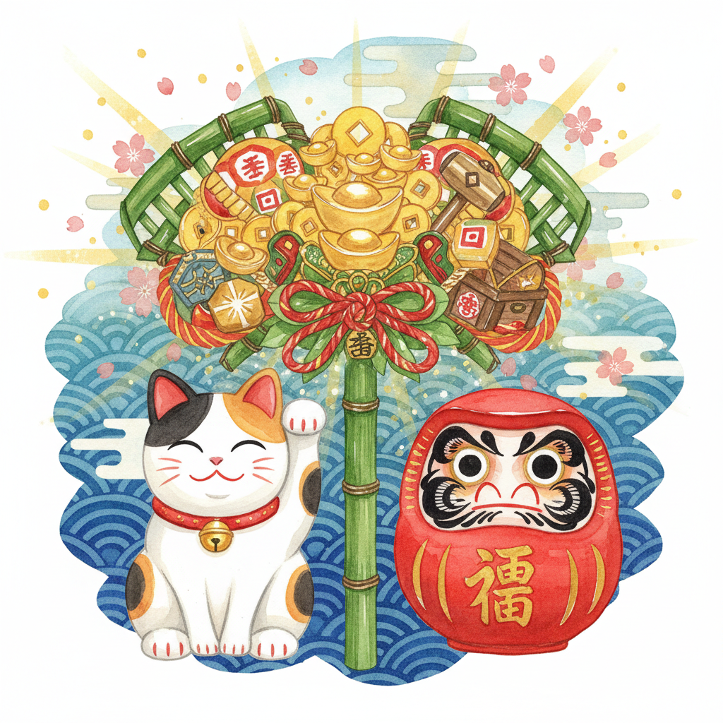 2026.02.25商売繁盛の縁起物完全ガイド ─ 熊手・招き猫・だるまの正しい飾り方商売繁盛を願う縁起物にはそれぞれ意味と正しい飾り方があります。熊手、招き猫、だるま、七福神、商売繁盛のお札まで、選び方から処分方法まで完全解説します。読む →