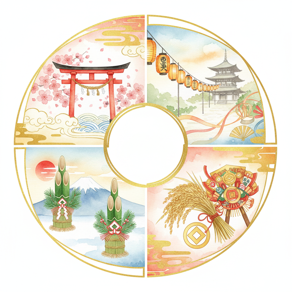2026.02.25商売繁盛の年間行事カレンダー ─ 月別の商売運アップ行事ガイド1月の十日戎から12月の歳の市まで、商売繁盛に関わる年間行事を月別に完全網羅。各行事の由来、参拝先、吉日との組み合わせを解説します。読む →